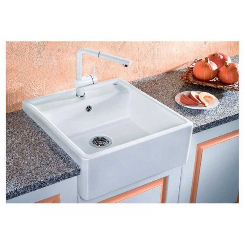 Описание BLANCO Керамика Привлекательное решение для кухонь в стиле кантри Элегантное сочетание радиусов закруглений Очень вместительная чаша Элегантное исполнение в глянцевом белом цвете Комплектация: отводная арматура с корзинчатым вентилем 3.5"