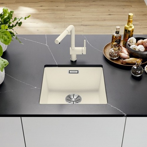 Описание Ширина шкафа 50 см Размеры 430 х 460 мм Размеры выреза 400 х 400 мм Размер чаши 400*400*190  мм Угловой радиус 10 мм Отводная арматура с корзинчатым вентилем 3.5 InFino™ Страна производитель: Германия Мойка BLANCO SUBLINE 400-U – изысканная лаконичность Элегантный дизайн и практичность гранитной кухонной мойки BLANCO SUBLINE 400-U от известного немецкого производителя обеспечили изделию широкую популярность среди потребителей. Эргономичные, с прямыми углами, кухонные мойки данной серии особенно подходят для уютных, небольших по метражу кухонь. Широкая цветовая палитра (10 вариантов) обеспечивает гармоничное вхождение рабочих поверхностей в ваш неповторимый проект. Чем отличается мойка BLANCO SUBLINE 400-U Технология производства, используемые компоненты, безопасность: материалы и технологические процессы, используемые при производстве сантехники BLANCO, имеют сертификаты экологического и гигиенического соответствия для стран Европы; при производстве запатентованного материала SILGRANIT® PuraDur® используются камень и акриловая смола – компоненты, сочетающие надежность природы и стремительность прогресса; уникальная технология литья исключает образование в мойке BLANCO SUBLINE 400-U пор и трещин, являющихся очагом роста патогенных микроорганизмов. Устойчивость к повреждениям любого характера: минимальная подверженность механическим повреждениям; устойчивость поверхности к воздействию пищевых кислот; резистентность к налету от воды плохого качества; устойчивость чаши к перепадам температур. В нашем интернет-магазине помимо модели компактных размеров BLANCO SUBLINE 400-U вы можете купить все необходимые комплектующие для ее установки, а также кухонные аксессуары по выгодным ценам.