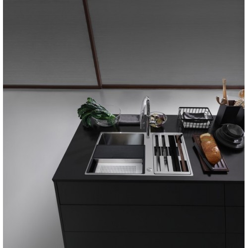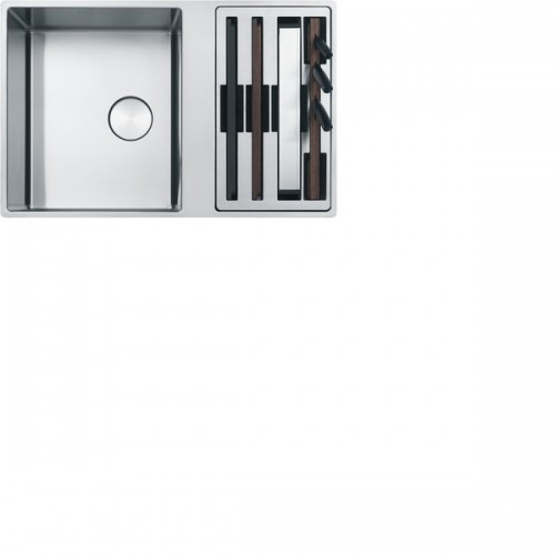 Описание Мойка из нержавеющей стали Franke Box BWX 120-41-27 шириной 82 сантиметра. Модель Premium класса представлена с рабочим центром справа и слева. Прямоугольная раковина с полировкой поверхности устанавливается сверху или вровень со столешницей (узкий кант). Устойчивость к механическим повреждениям и резким перепадам температур Вашей модели обеспечивает материал сталь марки AISI 304. Любимый материал профессиональных шеф-поваров легко чистится. Многофункциональная кухонная раковина укомплектована: 2 разделочными досками (пластиковая и деревянная), миской из нержавеющей стали, тремя ножами (специально для хлеба, овощей, мяса/рыбы), деревянный держатель для ножей. Аксессуары размещаются на краях чаши или полностью закрывают ее, выполняя функцию крыла. Размер мойки: 790 x 510 мм Вырез под мойку: 770 х 490 мм Размер чаш: 410 x 480 x 200, 270 x 480 x 200 см Сформированные отверстия с обратной стороны: 2 x 35 мм Вентиль-автомат в комплекте, выпуск 3,5", Круглая декоративная крышка для слива: в большой чаше Крепления: крепления fastfix® обеспечивают легкий монтаж мойки в столешницу толщиной от 12 мм, Монтажный фланец для установки смесителя в комплекте