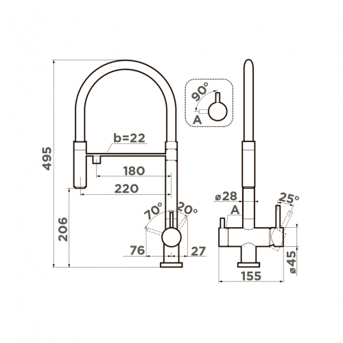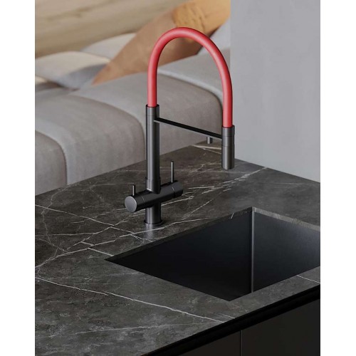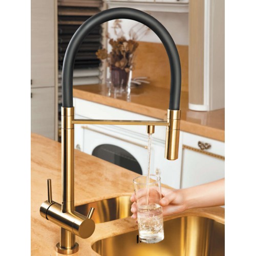 Уникальная запатентованная конструкция — сочетание гибкого шланга и подачи фильтрованной воды. Технология PURE LIFE®: подключение фильтра для очистки воды. Фильтрованная вода подается по отдельной трубке и не смешивается с водопроводной водой. Гибкий съемный шланг. Среди тысячи претендентов Kanto попал в ТОП-20 известнейшего международного конкурса дизайна Red Dot Award 2014. Гарантия на покрытие - 2 года. Высококачественная латунь без содержания свинца сохранит воду чистой и здоровой. Картридж: керамический ∅35 мм Подводка: усиленная 3-х слойная цветная подводка, полный комплект соединений для подключения Можно укомплектовать гибким съемным шлангом в разных цветах