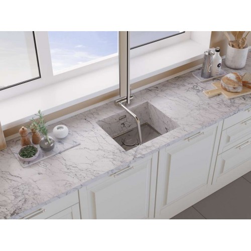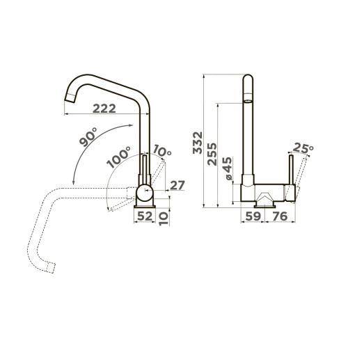Cмеситель для установки под окно c высоким поворотным изливом.  Смеситель можно встроить в мойку любого материала и типа монтажа. Высококачественная латунь без содержания свинца сохранит воду чистой и здоровой. Полный комплект соединений для подключения, инструкция, гарантийный талон. Картридж: керамический ∅35 мм Аэратор: пластик Подводка: гибкая, в оплетке из нержавеющей стали
