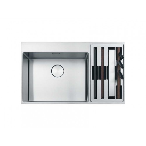 Описание В хорошо организованной кухне каждое движение эффективно. Благодаря кухонной мойке Box Center самые важные кухонные принадлежности становятся её частью, аккуратно хранятся в отделение справа или слева − прямо там, где они вам понадобятся для приготовления. Уникальная многофункциональность в самом центре Вашей кухни!  дополнительное рабочее пространство, гигиена и чистота идеальная интеграция - стандартные размеры 86 х 51 см, запатентованная система крепления Fast Fix и возможность двойной установки (сверху или вровень со столешницей) декоративная круглая накладка на выпуск как элемент дизайна инновационная механическая система пневматического открывания и закрывания слива воды из мойки полный комплект аксессуаров (входит в стоимость): 2 разделочные доски, миска из нержавеющей стали, 3 ножа (для хлеба, овощей, мяса/рыбы), держатель-подставка для ножей Модель удостоена сразу двух наград IF Design Award и премии Kitcheninnovation Award в 2019 году за дизайн и высокую функциональность. Диаметр выпуска 3 1/2'' Расположение малой чаши Справа Ширина шкафа 900.00 mm Длина 860.00 mm Ширина 510.00 mm Длина чаши 540.00 mm Ширина чаши 410.00 mm Глубина чаша 200.00 mm Страна производитель: Италии