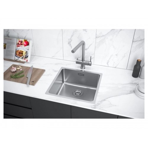 Мойка изготовлена из нержавеющей стали, обладающей высокой коррозийной стойкостью, большим запасом механической прочности, а также устойчивостью к воздействию кислот и других химически активных соединений.