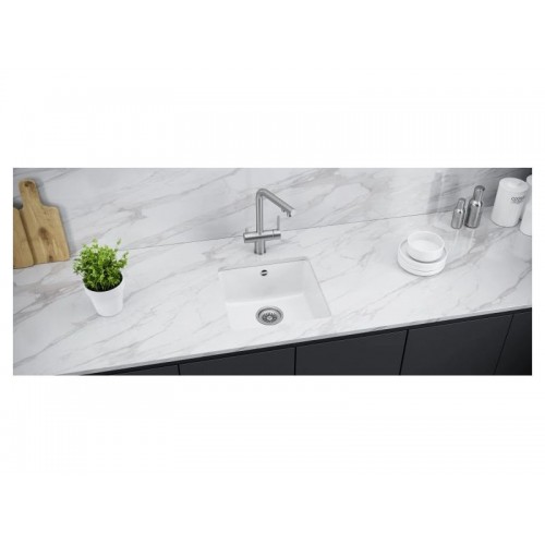 Описание KeraPlus - это натуральная коалиновая (белая)  глина, полностью покрытая глазурью, благодаря чему изделия из этого материала становятся поистине уникальными. Горячий обжиг при температуре 1300 гр.С наделяет мойки KeraPlus непревзойдёнными свойствами. Керамические мойки обладают плотной поверхностью, которая обеспечивает прочность и долговечность. Керамика  KeraPlus легка в уходе и обладает высочайшей температурной устойчивостью. Вы можете быть уверены, что мойка не потеряет своего блеска и не выцветет на протяжении десятилетий.   Характеристики Материал - Керамика KeraPlus Мебельная база - 45 см Тип монтажа - Подстольный Размер - 414х456 мм Цвет - Кристальный белый KW Метод производства - литье под давлением, обжиг Толщина материала ~14 мм. Глубина чаши 185 мм   Комплектация • Комплект крепежа • Слив + Перелив • Сифон с подключением ПММ • Гофрированный шланг слива