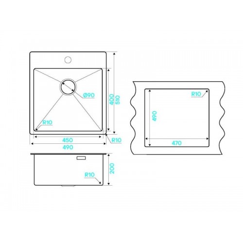 Описание Мойка  изготовлена из нержавеющей стали, обладающей высокой коррозийной стойкостью, большим запасом механической прочности, а также устойчивостью к воздействию кислот и других химически активных соединений. Устойчива к термическим воздействиям. Устойчива к образованию ржавчины. Не задерживает загрязнения на поверхности. Безопасна для здоровья. Легка в уходе и чистке. Материал - Нержавеюща сталь AISI304  Мебельная база - 50 см Тип монтажа - Врезной Размер мойки- 490х510 мм Размер чаши - 450х400 мм Глубина чаши - 200 мм Радиус - R-10 Метод производства - сварная, ручное производство Толщина материала - 1,2 мм Комплектация • Декоративная накладка на слив • Комплект крепежа • Слив + Перелив • Сифон с подключением ПММ • Гофрированный шланг слива