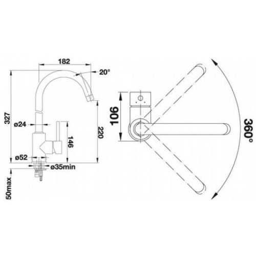 • Увеличенный радиус действия благодаря вращающемуся на 360° изливу