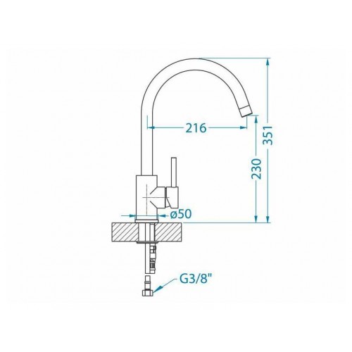 - Гибкие присоединительные шланги с резьбовым соединением G3/8 обеспечивают легкую и быструю установку