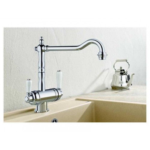 Смеситель в ретро-дизайне Blanco Sora хром – классический стиль и традиционное качество от ведущего немецкого производителя. В конструкции смесителя имеется дополнительный канал для подачи питьевой воды, очищенной от извести, хлора и других вредных примесей. Таким образом, фильтрованная и неочищенная вода подаются отдельно. Поверхность смесителя надежно защищает от сколов и ржавчины , а запатентованный аэратор избавит от известкового налета. Blanco Sora имеет небольшие размеры: высота от основания составляет 188 мм, длина излива составляет 236 мм. Смеситель с легкостью подключается с помощью шлангов длиной 450 мм. Устойчивость обеспечивается стабилизирующей пластиной. Излив вращается на 360град., что в совокупности с высоким расположением обеспечивает исключительное удобство при использовании.