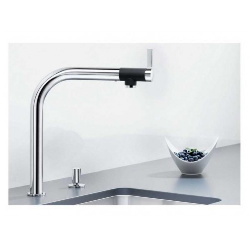 BLANCO VONDA поверхность "нержавеющая сталь" смеситель, Кухонный смеситель Vonda из нержавеющей стали в сочетании с функциональной мойкой обеспечивает максимальный комфорт и удобство эксплуатации. Эргономичность и минимализм исполнения прекрасно подойдут для современных кухонных интерьеров. Модель подходит для комбинирования с мойками для монтажа под столешницу. На носике смесителя с черной противоскользящей поверхностью расположен эргономичный и удобный рычаг управления. Благодаря высокому поворотному изливу, расширяющему рабочую зону, можно легко наполнять водой большие емкости.• Высота: 36,7 см • Высота излива: 27,2 мм
