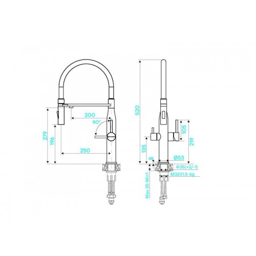 Смеситель KÜCHENSTERN ELIT-FE объединяет сразу две функции - питьевая и обычная вода из одного смесителя. Смесителем удобно пользоваться , так как он имеет два отдельных рычага управления для водопроводной и фильтрованной воды, а также переключение на душ.