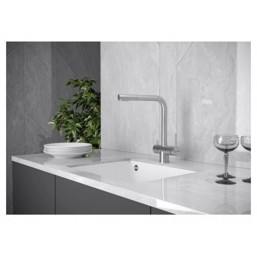 Смеситель KÜCHENSTERN FOKUS-F объединяет сразу две функции - питьевая и обычная вода из одного смесителя. Смесителем удобно пользоваться , так как он имеет два отдельных рычага управления для водопроводной и фильтрованной воды.