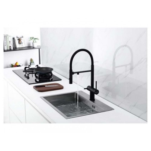 Смеситель с двуми режимами подачи воды - струя и душ. Гибкий излив из силикона обеспечивает оптимальный диапазон движения.
